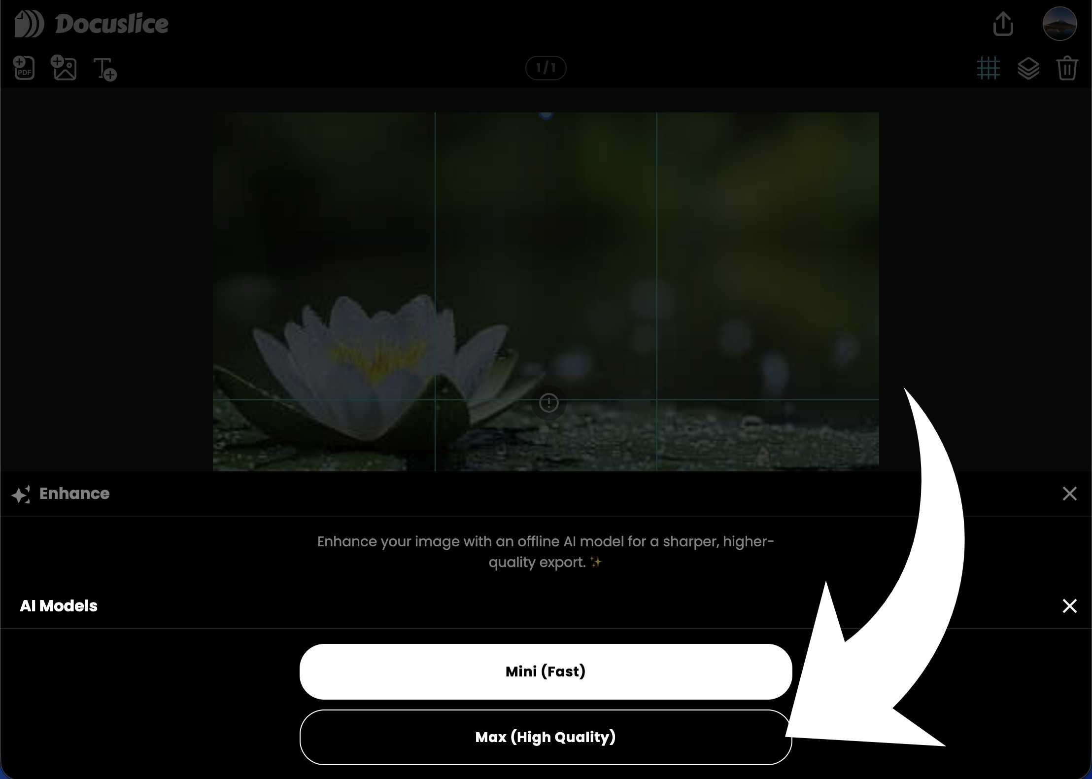 - Better prints every time — AI Photo Enhancement is especially powerful when combined with Docuslice's tiled printing, where image quality is front and center across every page.